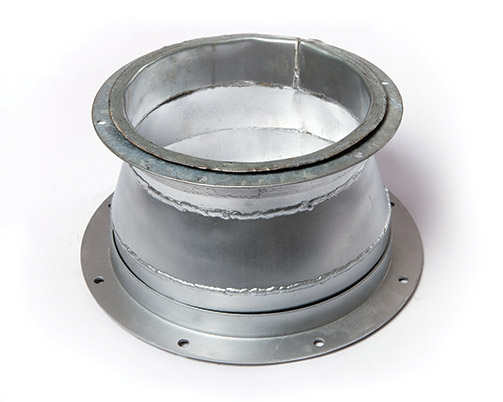 Just like they sound, these flanged end reducers narrow to allow you to connect to a smaller pipe. The tapered duct is spot welded and caulked with flange ends.